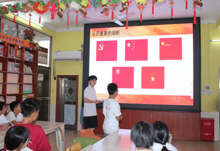 在活动结束前,志愿者还与孩子们一起制作国旗升降台,在动手操作中体会到升国旗的庄严肃穆。本次实践活动调动孩子们积极参与爱国主义教育活动的积极性,让红色基因根植心中,进一步增强对祖国的热爱之情和祝福之意。“小老师”们勉励孩子们努力学习,立志做民有所呼、我有所应,民有所求、我有所为的中国特色社会主义接班人!