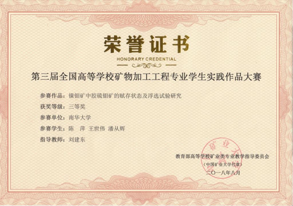 第三届全国高校矿物加工工程专业学生实践作品一等奖