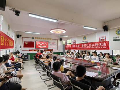 在村干部的陪同下,同学们走访留守儿童家中,辅导暑期作业,宣传防溺水,防性侵,禁毒等相关知识;帮助敬老院的老人完成社保认定,给老人们带去陪伴与欢乐;组织召开青春屋场恳谈会,讲述了烈士罗子平把一腔热血,无私地奉献给了人民,奉献给了中国的革命事业的故事。