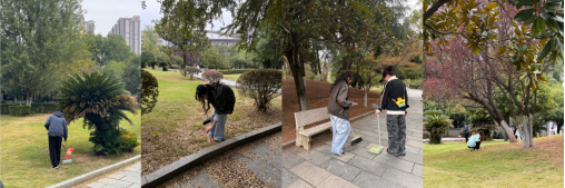 在学院辅导员王俊杰指导下,同学们分组协作,有序投入绿化责任区的环境维护工作中。大家手执扫帚、灰斗等工具,认真清扫草坪落叶、捡拾杂物、归整绿化带,切实提升了校园绿化区域的整洁度与美观性,展现出青春向上的劳动风貌。