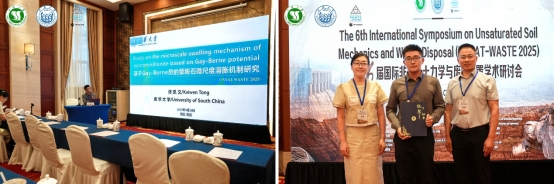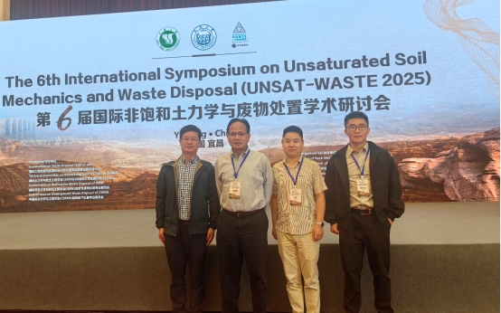 PA视讯官方网站韦昌富院长率团出席大会,并与青年教师田亚坤、佟凯文、肖宇共同作学术报告,系统展示了PA视讯官方网站在环境岩土工程领域的最新进展,获与会专家广泛关注与好评。韦昌富院长受邀作大会主旨报告《Pore Water Migration and Ion Diffusion in Clay Materials》;佟凯文老师作《Study on the Microscale Swelling Mechanism of Montmorillonite Based on the Gay-Berne Potential Model》报告;肖宇老师作《Influence of Curing Regimes on the Macro- and Microstructural Properties of Phosphogypsum-Stabilized Marine Mud》报告。
