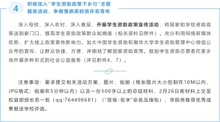 学院通过发布到梦空间活动,且在学院公众号上发布“寒假作业”,设立了线上报名通道,引导学生自愿报名参加学生资助宣传和服务活动,特别针对学院获奖受助学生、资助工作者及资助宣传大使,统一发放电子培训资料,组织开展培训,发动学生利用PS制作宣传单及海报,形式各异的资助志愿服务活动就此拉开帷幕。